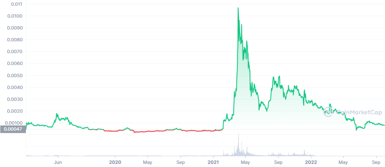 BTT یکی از تهاجمیترین رمز ارزهای حال حاضر بازار کریپتو است. این توکن با قیمت ۰.۰۰۰۴۷ وارد بازار شد و سپس در آپریل سال ۲۰۲۱ به اوج قیمت خود رسید (۰.۰۱۳۵۶۶). قیمت فعلی ارز بیت تورنت برابر با ۰.۰۰۱۰۷۴ دلار یا ۳۴ تومان است. این توکن در ماه گذشته دارای یک روند افزایشی بوده که احتمال میرود همچنان ادامه داشته باشد. حالا بیایید به پیشبینی قیمت این رمز ارز برای ادامه سال ۲۰۲۲ بپردازیم.